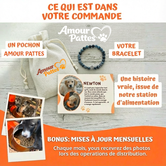 Chaque bracelet nous aide à fournir des repas à 10 chiens abandonnés.