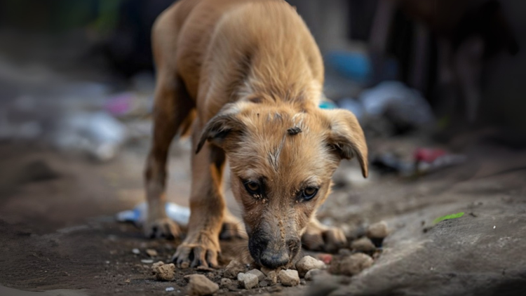 Imaginez votre propre animal de compagnie mangeant désespérément du plastique et des cailloux parce que son estomac lui fait tellement mal à cause de la faim.
